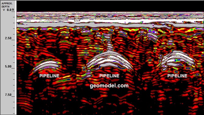 GeoModel, Inc. has been locating utilities and pipelines at sites nationwide using ground penetrating radar (GPR) since 1991. A utility or pipeline made of metal, PVC, or any other material that has different dielectric or conductive properties than the surrounding soils or rocks might be located with GPR.